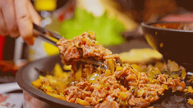 贵州特别擅长运用各种酸辣味型,老坛酸菜肥牛就是每桌必点的经典!酸菜发酵得恰到好处,香气格外清冽。配上肥瘦相间的黄牛肉一烙,油脂的丰润和酸菜的爽脆在嘴里交织,马上就把馋虫勾出来!