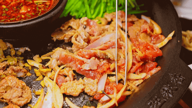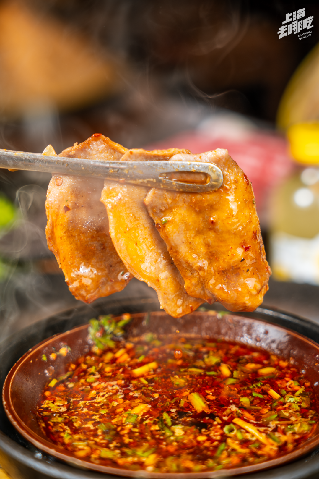 薄切黑猪五花、青辣椒肥牛、功夫玫瑰牛舌、东北酸菜...滚烫的铁锅蓄势待发,就等着这些人气美味上锅“烙烙”。熟透后趁热浸入活油蘸水,直接在舌尖演绎贵州风物诗!