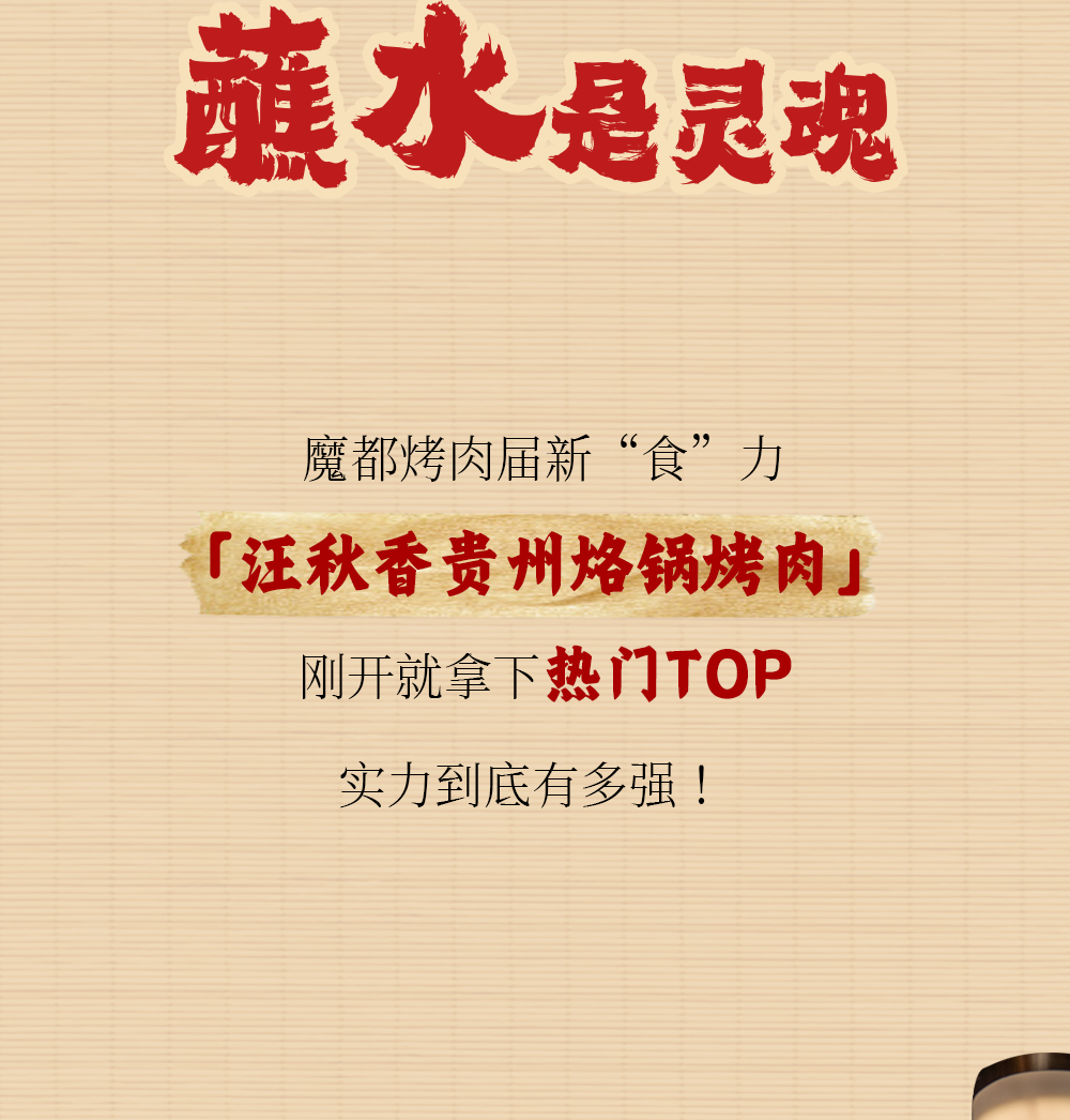 在淮海中路找到一家烤肉新店——「汪秋香贵州烙锅烤肉」,开业没多久就火上热门TOP,贵州同事吃完就说想家了!